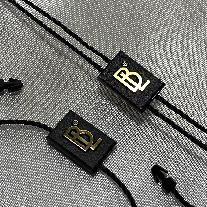 Kundenspezifisches Kunststoffsiegel ST-M160 für Modeartikel wie Kleidung, Schuhe, Taschen, Schmuck, Bekleidungszubehöre usw.