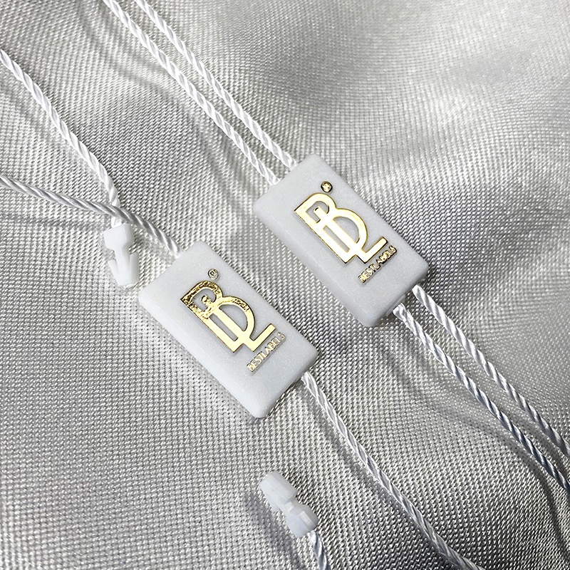 Kundenspezifisches Kunststoffsiegel ST-M182 für Modeartikel wie Kleidung, Schuhe, Taschen, Schmuck, Bekleidungszubehöre usw.