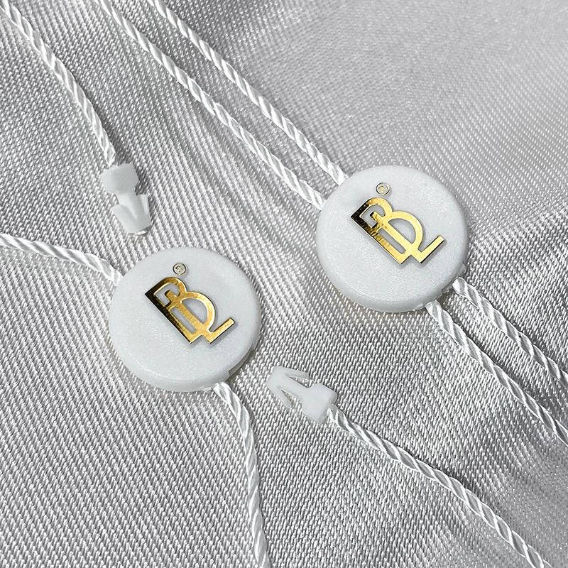 Kundenspezifisches Kunststoffsiegel ST-M34 für Modeartikel wie Kleidung, Schuhe, Taschen, Schmuck, Bekleidungszubehöre usw.