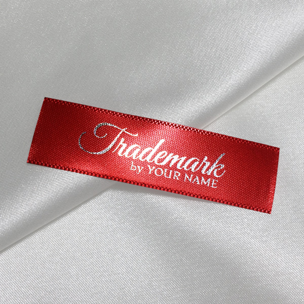 Benutzerdefiniertes Etikett TL-M139 gedruckt auf satiniertem Textil, geeignet für Kleidung und verschiedene Kleidungsstücke.