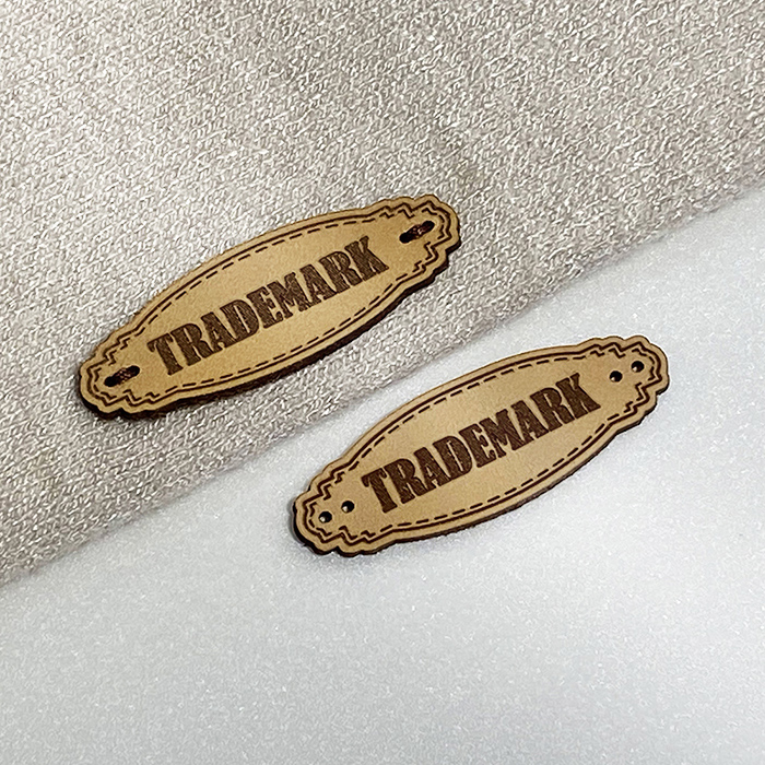 Individuelles Etikett aus Naturleder, lasergraviert und nach den angegebenen Maßen zugeschnitten.