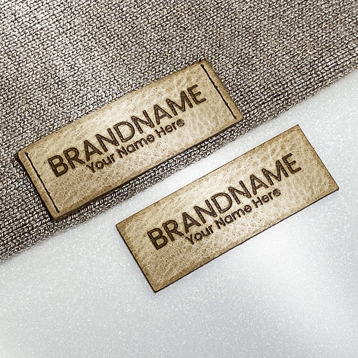 Personalisiertes Etikett EP-M53 aus Naturleder für Kleidung, Taschen, Schuhe und verschiedene Bekleidungsaccessoires.
